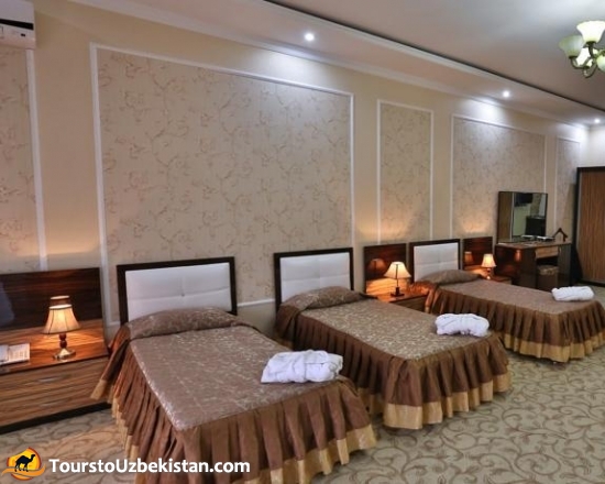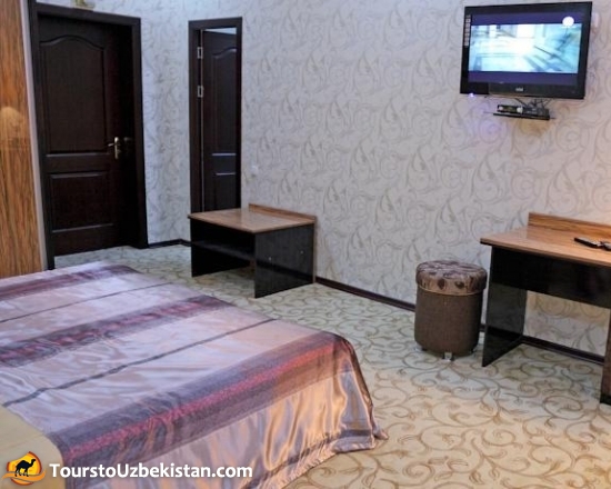 "Sarbon Plaza" Hotel is located just a 5-minute walk away from the centre of Bukhara. All rooms come with a private bathroom. Some rooms have satellite TV and a seating area. The hotel's bar is always offered good assortment of strong and soft drinks. There are also traditional Uzbek wooden furniture and free internet. Having tasted the national and european dishes of the restaurant "Sarbon Plaza", you will add the list of your favourite dishes.