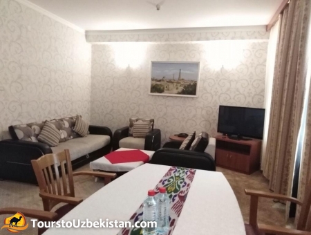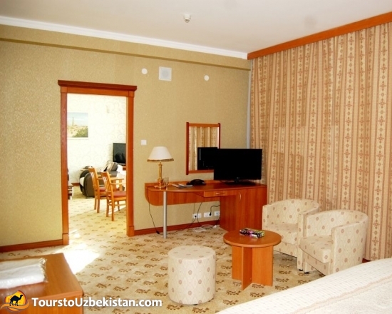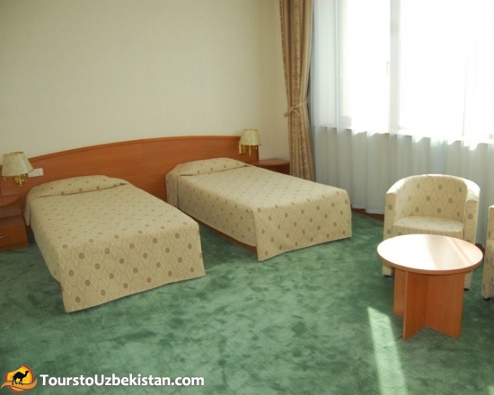 “Khorezm Palace” is a new modern hotel, which is located in the center of Urgench city. It is very close to the picture gallery, Central department store and the market. The hotel offers 64 comfortable single rooms, 37 double rooms and 2 apartments. At the hotels's restaurant you can find a wide variety of Khorezm dishes and wines.