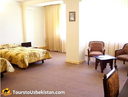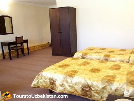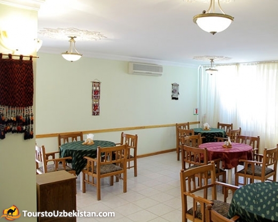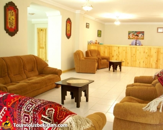 The private newly built hotel presents the finest Uzbek woodcrafts. The decor of "Malika Khorezm" Hotel is classic and cozy. The authentic Uzbek and European cuisine is unforgettable. The large entry lobby is spacious and light. In the cozy restaurant you will be served with the delicious authentic Khorezm food such as gumma, pilav and many other courses. In fact, according to the Khorezm tradition, the courses have no end.