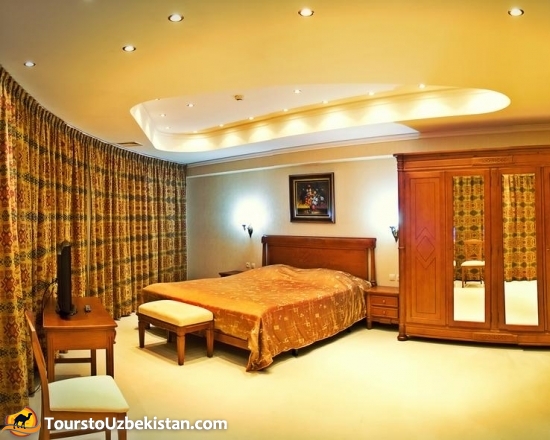 A newly built Hotel Registan Plaza is conveniently located in the city centre between business and the historical parts of Samarkand. Design and structure of the Hotel as well as its interior meet up-to-date standards of the hotel industry. There are the following facilities in the Hotel President: four lifts, which serve seven floors; 165 spacious and comfortable rooms, which are beautifully furnished; satellite TV, internal and IDD telephones, mini-bars, air-conditioners and well-equipped bathrooms. A special offer for VIP's is our luxurious apartments adorned in a Spanish style, with a living room, meeting-room, two bedrooms and two bathrooms equipped with jacuzzi and Charcot's douche.