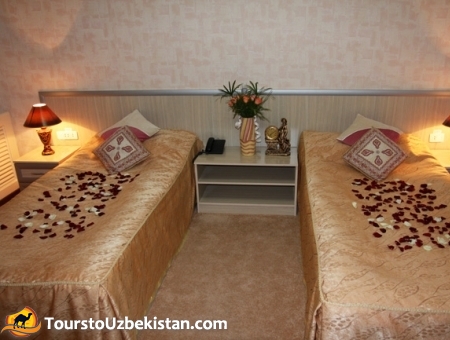 The hotel complex is located near the center, not far from the railway station and bus station. The hotel is situated in walking distance to Central Park of culture and rest named after Alisher Navoi. For some minutes you can get into the old part of the city where you will have an excellent opportunity to see the main sights and ancient monuments of Samarkand. The rooms are equipped with everything necessary for a great holiday. In the hotel «Shaxzoda Lux» there is an Art Club with its own bar «Da Vinci» where you can taste delicious dishes of national, European and Italian cuisines.