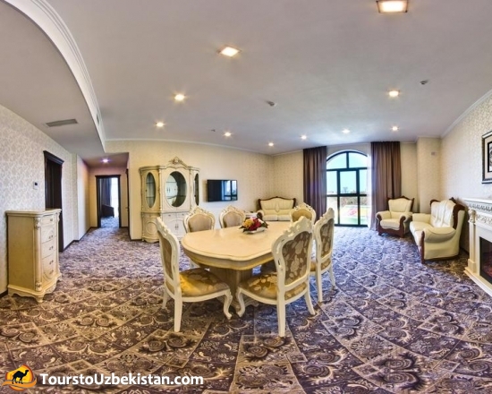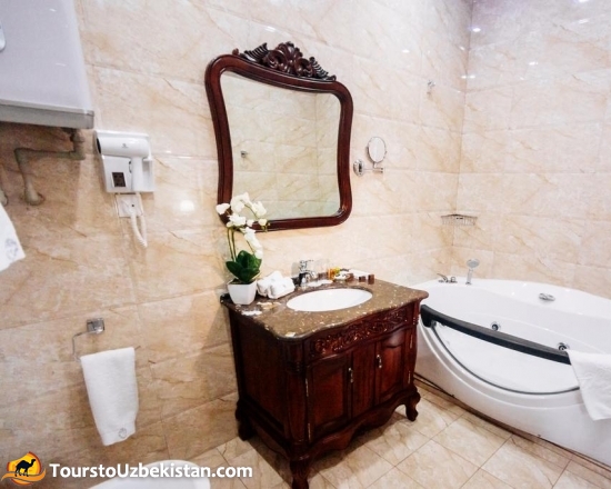 Part of the hotel territory belongs to a splendid spa area with an indoor swimming pool of 60 square meters. Relaxing music sounds in the lounge, while for those who prefer active leisure our hotel has a well-equipped gym and Finnish sauna. Rest in our cozy rooms after a long busy day will please you, and the view from panoramic windows will help you experience all the beauty and charm of Bishkek.