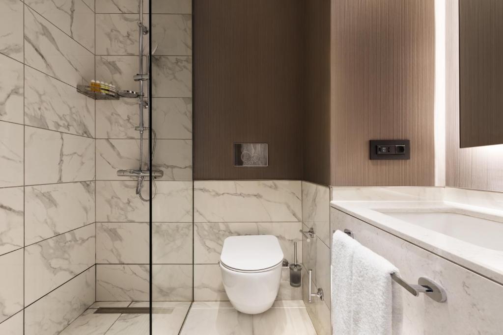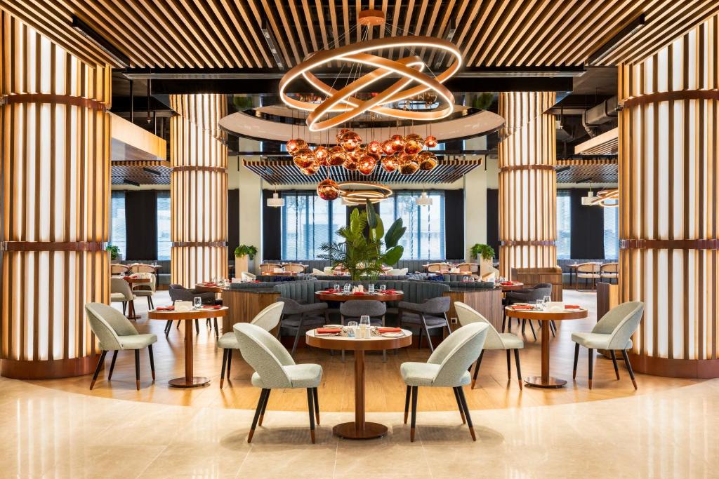 The hotel features 212 well-appointed rooms and suites, equipped with free high-speed Wi-Fi, air conditioning, minibar, flat-screen TV, and complimentary tea and coffee facilities, ensuring a comfortable and relaxing stay.