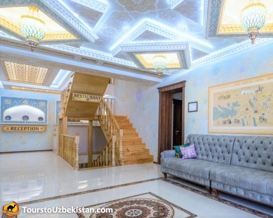 Grand Vizir - Hotel is a cozy boutique hotel located in the historic center of Khiva, just steps away from the city’s main attractions. The hotel offers comfortable rooms equipped with air conditioning, a TV, and modern amenities. Guests can enjoy a delicious breakfast each morning, and in the evening relax at the on-site restaurant or on the terrace overlooking the charming old streets. Friendly staff, a convenient location, and a warm atmosphere make for a pleasant and comfortable stay.