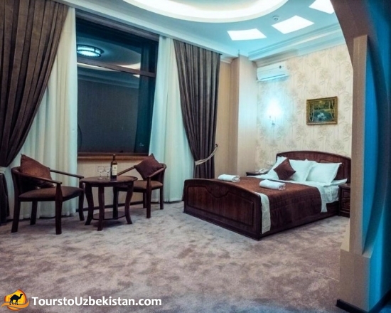 The boutique hotel Meros is located in the center of Samarkand on the main boulevard of the university. The location of the hotel is convenient because the city's attractions are within walking distance, which allows guests to look at the sights in the evening light.
