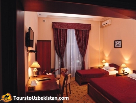 The hotel “Royal Palace” is the sample of the national Uzbek architectural culture. The huge exotic iron gates open the way to the inner brick yard with green lawn a colorful tapestry of the Registan Square on the left wall and marble staircase leading to the reception hall decorated in oriental style. Expect More! You’re Life – Your Choice! Enjoy your staying in Samarkand.