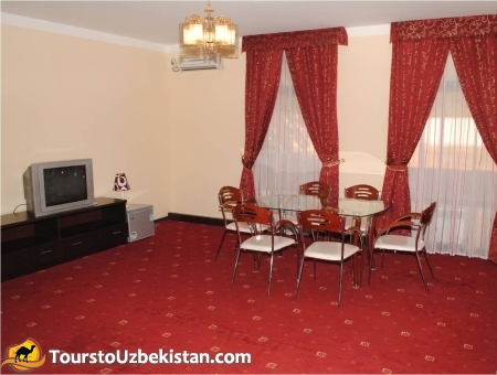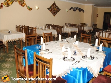 New hotel "Sharqoniy Samarqand" is located in one of the most picturesque part of the ancient Samarkand. The hotel is very comfortable and cozy. Hotel "Sharqoniy Samarqand" was created for comfort. There is a restaurant where guests can watch process of preparing and cooking the national dish "pilov" and watch programs folklore-show. The hotel consists of two floors, which are designed with local color and national peculiarities. All rooms are equipped with air conditioning, refrigerator, satellite TV, shower.