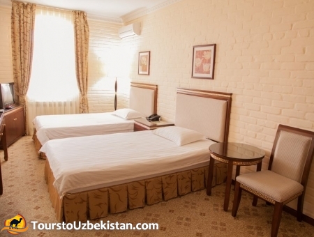 “Samir” hotel is located in a quiet secluded location, 1.5 km from the city center. Its interior is designed in European style. There are 26 rooms in the hotel: standard, junior, superior. All rooms have everything you need for a good rest: satellite TV, Wi-Fi, air conditioning, mini-bar, safe, telephone. Having been here, you find yourself in an atmosphere of oriental hospitality. The restaurant of “Samir” hotel offers the best european and national dishes prepared by skilled chefs. Thanks to the comfortable atmosphere and friendly staff, you will spend an unforgettable evening. “Samir” hotel is first of all comfort, provided in a European style, individual touch to every guest of the hotel. If you look for a quiet place away from the city bustle, the hotel "Sairam" is exactly what you need. Having visited “Sairam” hotel, you will be satisfied with the friendly staff, who will fulfill any of your request immediately.