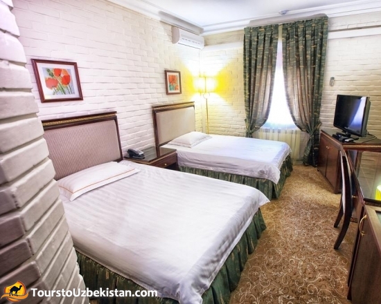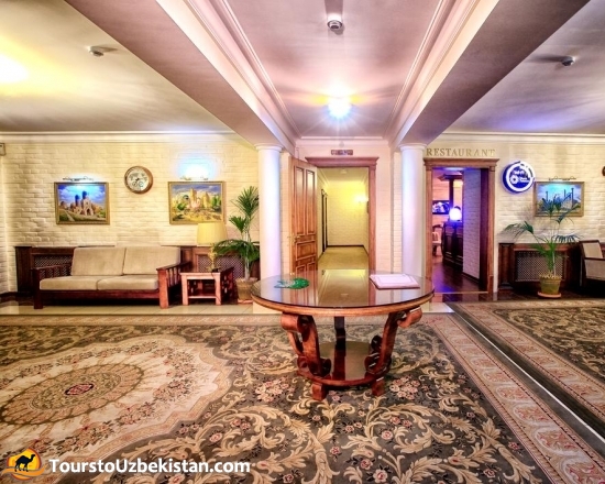 «Sharq» hotel is located in a quiet corner ofTashkentcity, but at the same time in the center of the city. The hotel interior is designed in classic noble style. The hotel offers 38 rooms: 18 double rooms, 10 junior suites, 4 single suites, 6 presidential suites. There are TV set, mini bar, safe, bathroom with all necessary amenities. In the restaurant you can taste culinary masterpieces of national and European dishes, as well as spend a pleasant evening on the trestle-bed, feeling the atmosphere of oriental flavor. There is also a conference room, a swimming pool with crystal clear water, gym. Having been in “Sharq” hotel once, you will certainly have a desire to stay in this cozy hotel at the next visit of our sunny hospitable capital.