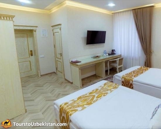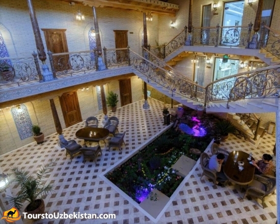 Zarafshon boutique hotel in Khiva you will feel a warm, cozy and comfortable welcome. The hotel accepts guests 24 hours a day and provides a breakfast buffet. This boutique hotel combines modern and national flavor. Each room is equipped with everything necessary for a comfortable stay of guests. At the disposal of guests is a bar, a restaurant (at the request of guests, food is delivered to the room), private car parking.