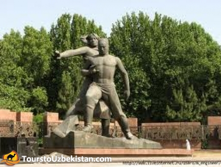 - Place de l'Indépendance, la place principale de l'Ouzbékistan reflète le passé, le présent et l'avenir du pays. Il y a des fontaines représentant l'énergie vitale du peuple ouzbek, le Cabinet et le Sénat, la "flamme éternelle" en l'honneur des soldats décédés pendant la Seconde Guerre mondiale.
