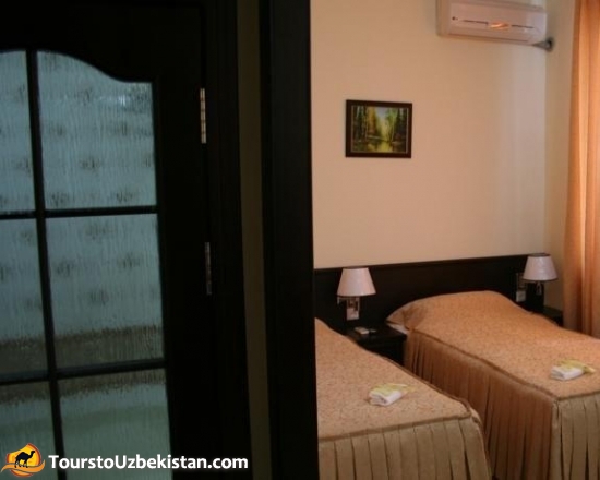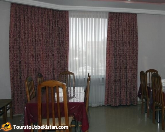La comoda posizione dell'hotel è molto attraente per gli ospiti della città. Il Rahnamo Hotel si trova a soli 5,5 km dalla stazione ferroviaria e a 2,5 km dall'aeroporto internazionale di Nukus. Vicino all'ingresso principale c'è il parcheggio. Le camere sono divise in 3 camere singole e 10 doppie. Le dotazioni delle camere includono letto accogliente, TV satellitare, aria condizionata (split-system), telefono ID.