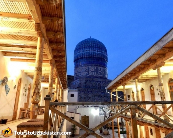 Настоящей гордостью гостиницы является терраса, откуда открывается восхитительный вид на голубые купола мечетей и мавзолеев. Здесь можно позавтракать на свежем воздухе, отдохнуть в компании друзей.