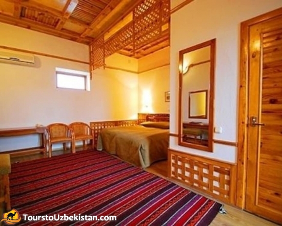 Здесь Вас ожидают прекрасные номера со всеми удобствами. В отделке гостиницы преобладает древесина, что придает ей особый шарм. К вашим услугам ресторан, бизнес центр, конференц зал и служба портье 24 часа в сутки. В тенистом дворике гостиницы Вы можете отдохнуть на "супа" - традиционном узбекском сиденьи, покрытом ватными домотканными матрасами. Уютные номера, дружелюбный персонал и хорошая кухня гостинцы оставят у Вас приятные впечатления от пребывания в Самарканде.